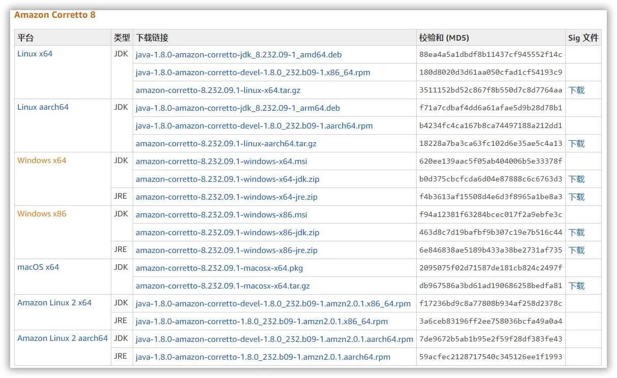 https://docs.aws.amazon.com/zh_cn/corretto/latest/corretto-8-ug/downloads-list.html