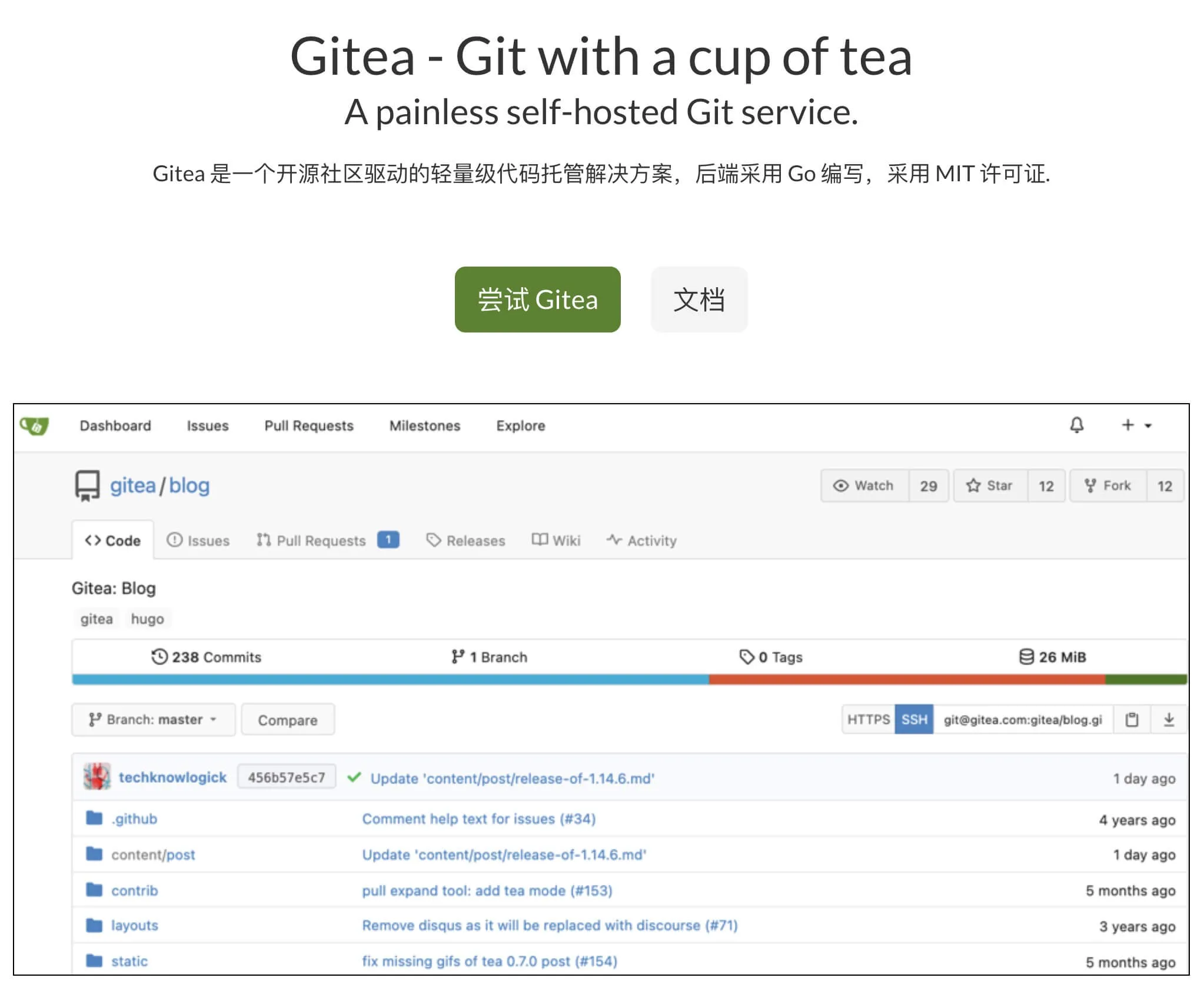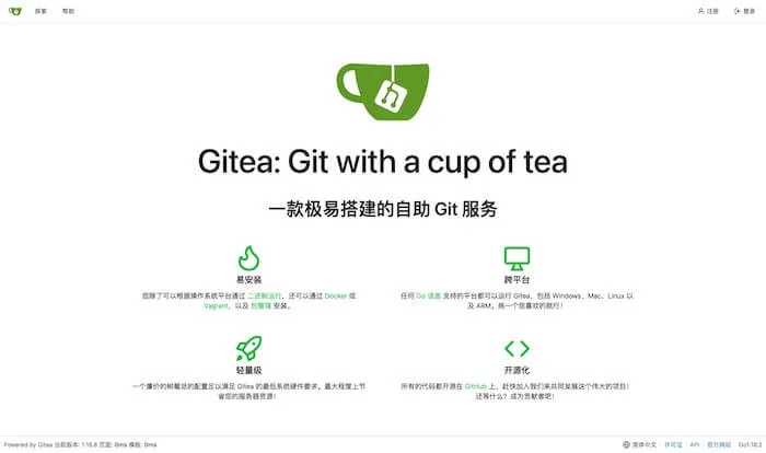 由于我之前提到过,想要用树莓派自己搭建一个Git的服务,于是我就去找了一下各种Git的服务端,最后就发现了这个使用go开发的Git服务端——Gitea。